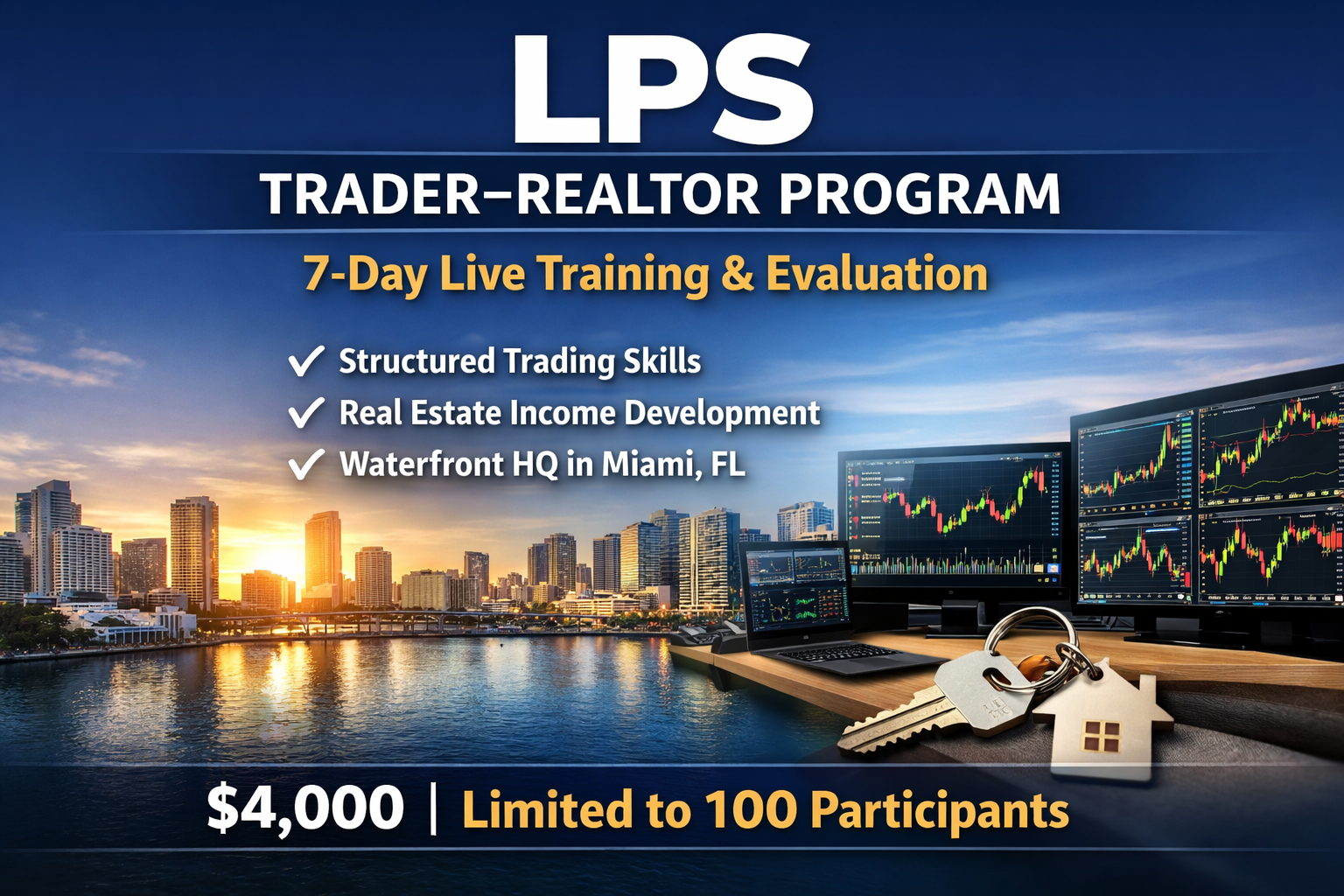 This program is designed for serious professionals who want to build structured trading skills while developing real estate income as a stable foundation. You will attend a 7-day live, in-person training week and be evaluated for eligibility for rotating team-based access to the trading floor.